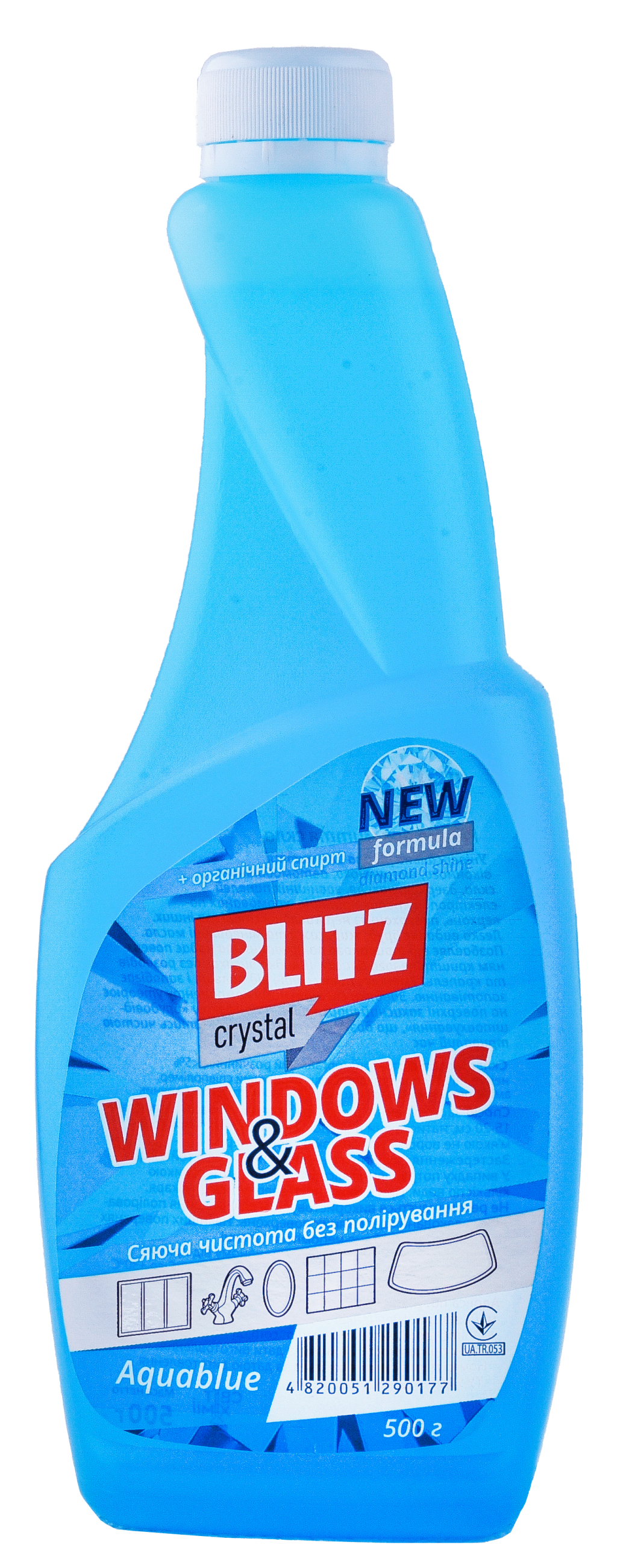Універсальна рідина для миття віконного, вітринного, автомобільного скла, дзеркал, кахля, зовнішніх панелей електропобутових приладів, хромованих поверхонь, поверхонь із нержавіючої сталі та інших Легко видаляє бруд, жир, сажу та мінеральні масла. Позбавляє від тривалого полірування та надає поверхням кришталевого блиску. Швидко висихає без розводів та крапель. Зменшує появу слідів від пальців і запобігає запотіванню. Завдяки спеціальному компоненту утворює на поверхні захисний шар, який надає ефекту «брудовідштовхування», що дозволяє поверхні залишатися чистою тривалий час.